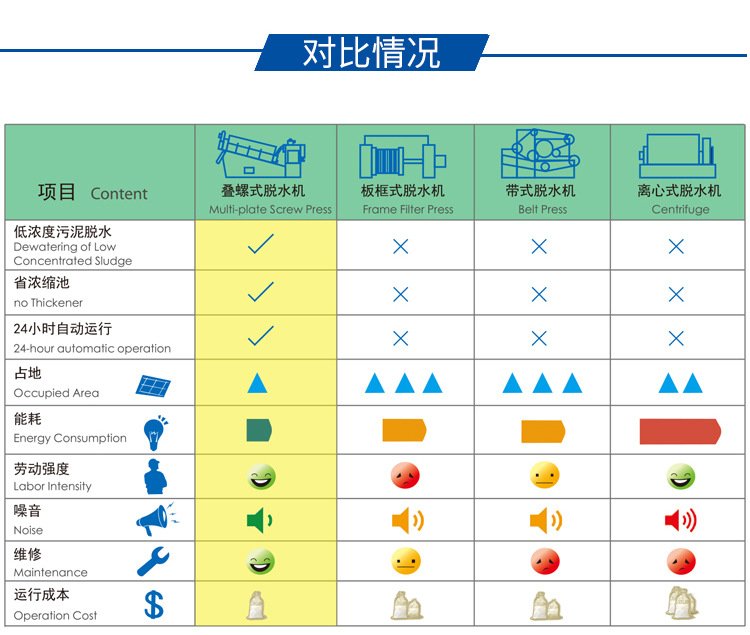 电控柜、絮凝混合槽和脱水主体一体化,减少占地面积,安装起来简单方便。